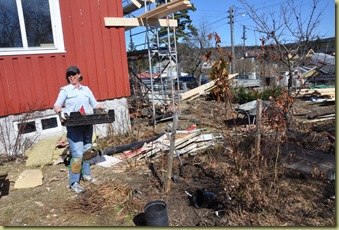 Vi var flere enn det bildene viser. Det var flere kasser enn det bildene viser. Flere poser. Flere hengere, og flere biler. Og taksteinen haglet. Jeg håper de plantene som kom til andre hjem enn mitt har det bra. De som endte på sentralanstalten på nordsiden av Strandhuset har det vel omtrent som uheldige barnehjemsbarn på 50-tallet. Men de er i ferd med å reddes. Et ventebed på 3 x 7 meter er nesten fullt – og det gjenstår på 26 kasser. Pluss busker og trær. Pluss to fullstappede pallekarmer med roser. 50 roser, kanskje. Eller 60…
