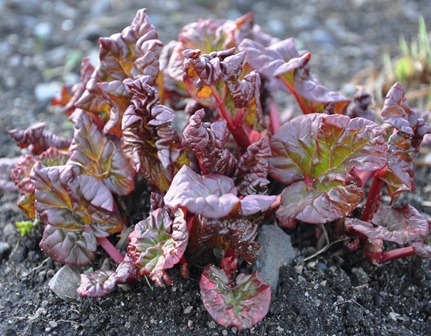 Det minner meg på at jeg må ha rabarbra jeg også! Ungene elsker å duppe den i sukker og kose seg med! Det er en kul plante, og den er visst ganske tidlig, er den ikke?