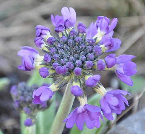 Primulaen var den første i blomst i år. Jeg trodde jeg hadde flyttet alle til primula- og dagliljebeddet, men denne lille nydlingen sto igjen i ventebeddet og nøt godt av sol og sand.
